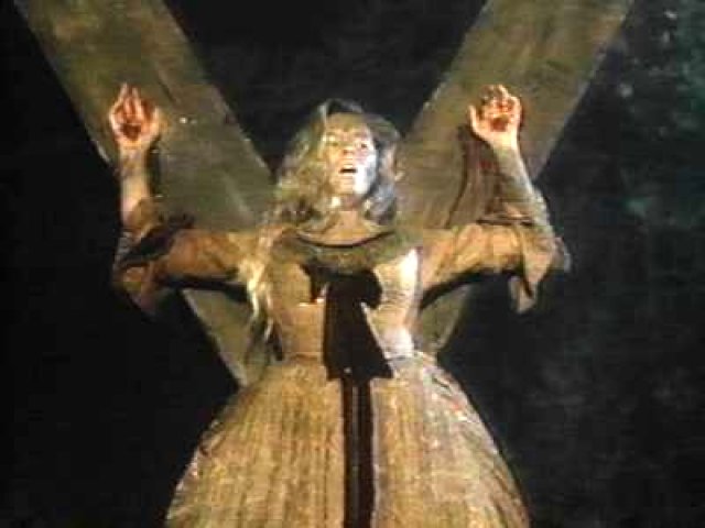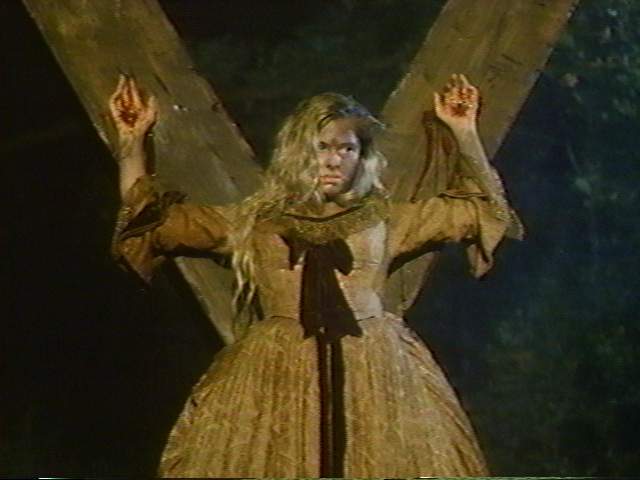 (Nicole Eggert) is a woman burned at the cross for practicing
